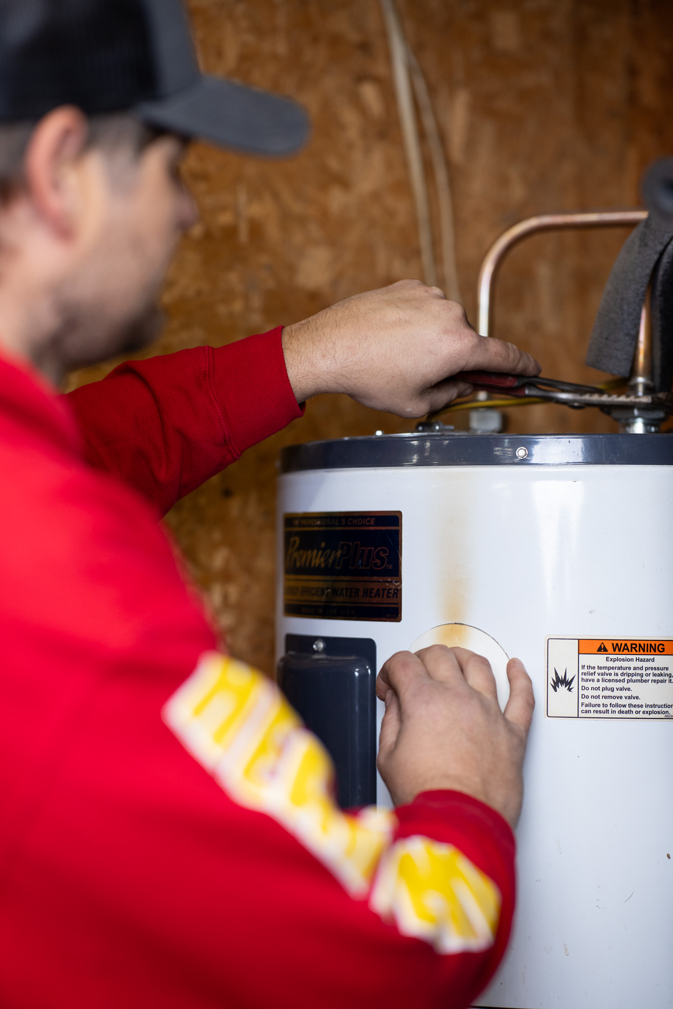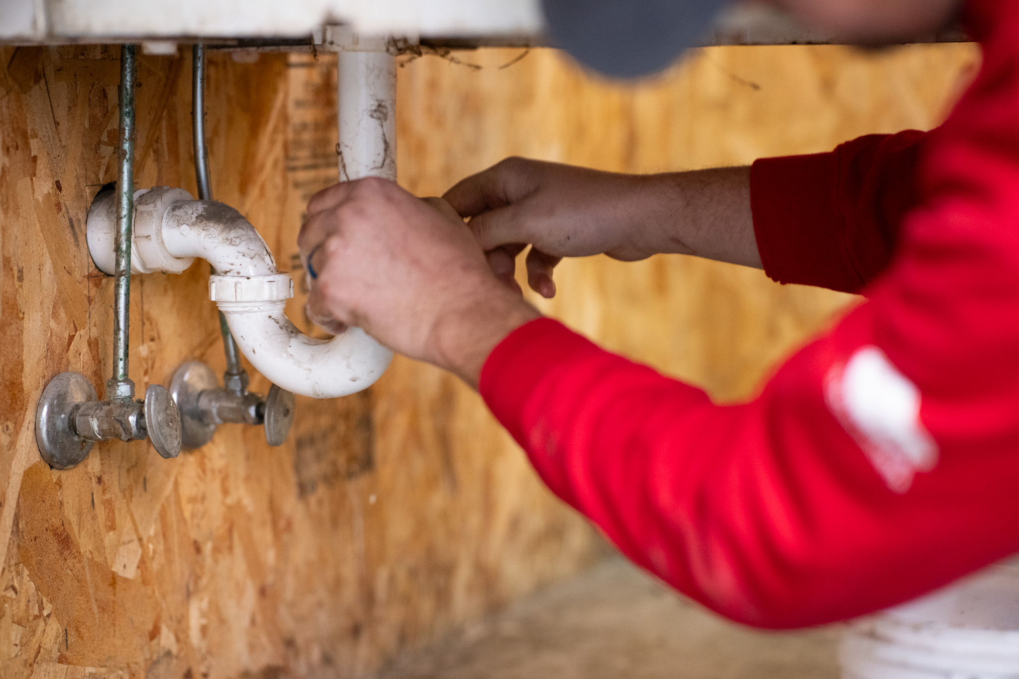 If you’re experiencing a leak, backup, or loss of water, we recommend shutting off the main water supply if possible and calling us right away. Our team can guide you on next steps and get help to you quickly.